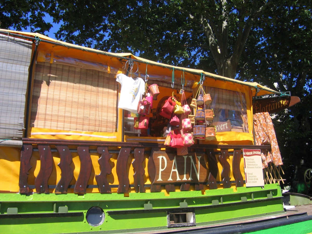 Um 10.40 Uhr starteten wir bei herrlichstem Sonnenschein in Richtung Le Somail. Dort machten wir kurz Halt, um das Kanal-Einkaufsschiff zu besuchen. Das ist wirklich liebevoll ausgestattet, und man erhält dort viele Produkte der Region. Wir erstanden eine Schokolade und eine Flasche Wein.