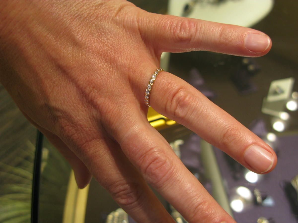 Auf ihre Nachfrage erklärte ich, was ich gerne wollte, und sie behaupteten, dass sie so kleine Diamanten hätten. Und sie hatten wirklich kleine Diamanten, und bis wir soweit waren, dass wir uns in irgendeiner Weise einig waren, dauerte es seine Zeit. Zunächst riet man uns davon ab, da die Steine alle unterschiedlich groß waren und so die Gefahr, einen aus dem Ring zu verlieren, recht groß war. Außerdem würde es einige Zeit brauchen, diese in den Ring einzupassen, doch wir hätten sie auch mitgenommen und in Deutschland einpassen lassen. Nach mir endlos erscheinender Zeit wurden wir uns über den Preis einig, der günstiger, als in Deutschland sein mußte (wir hatten uns vorab schon einmal danach erkundigt und wußten, wie der Preis dort sein würde). Schließlich handelten wir uns noch ein paar kleine Diamant-Ohrstecker mit ein. Man versprach uns, den Ring gleich mit den Diamanten zu bestücken, das würde ca. zwei Stunden dauern. Die Zeit verbrachten wir zunächst in dem Geschäft, wo wir auch etwas zu trinken erhielten. Die Verkäufer, die sonst keine weitere Kundschaft hatten, interessierten sich sehr für Thomas’ Handy und dessen Kameraobjektive. Alle Männer dort waren hin und weg. Da wir mittlerweile bestimmt 90 Minuten in dem Geschäft waren, war ich fast zur Eissäule gefroren, und so ging ich erst einmal nach draußen in die Sonne, um wieder aufzutauen, was bestimmt 20 Minuten dauerte. Danach bekam ich noch ein Armband von Pandora, das schon mit diversen Anhängern bestückt war, die ich allerdings nach meinem eigenen Geschmack austauschen konnte. Als man uns dann sagte, dass das Anfertigen des Ringes noch mindestens eine Stunde dauern würde, beschlossen wir, noch etwas durch die Straßen zu bummeln. Wir tranken uns eine Cola (die nicht schmeckte) und gingen noch in ein paar Geschäfte, kauften aber nichts. Nachdem wir um 12.45 Uhr zu dem Laden zurückgekehrt waren, dauerte es noch knapp 10 Minuten, bis der Ring dann endlich kam. Er war wirklich sehr schön geworden und enthielt jetzt 12 statt 5 Diamanten.